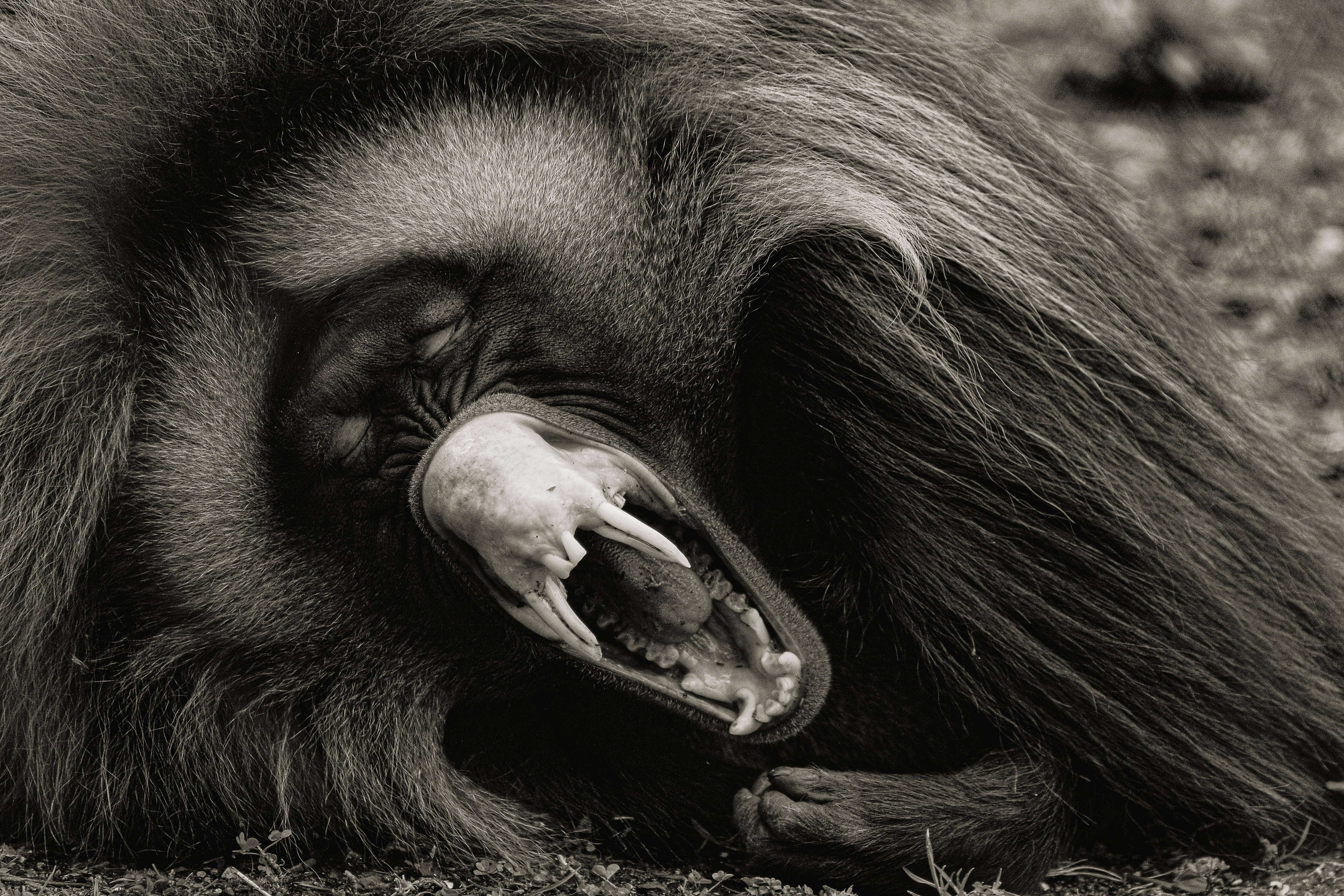 De Gelada eet vooral gras en leeft in Ethiopie, in grote groepen met complexe sociale structuren. Genomen in Diergaarde Blijdorp, Rotterdam.