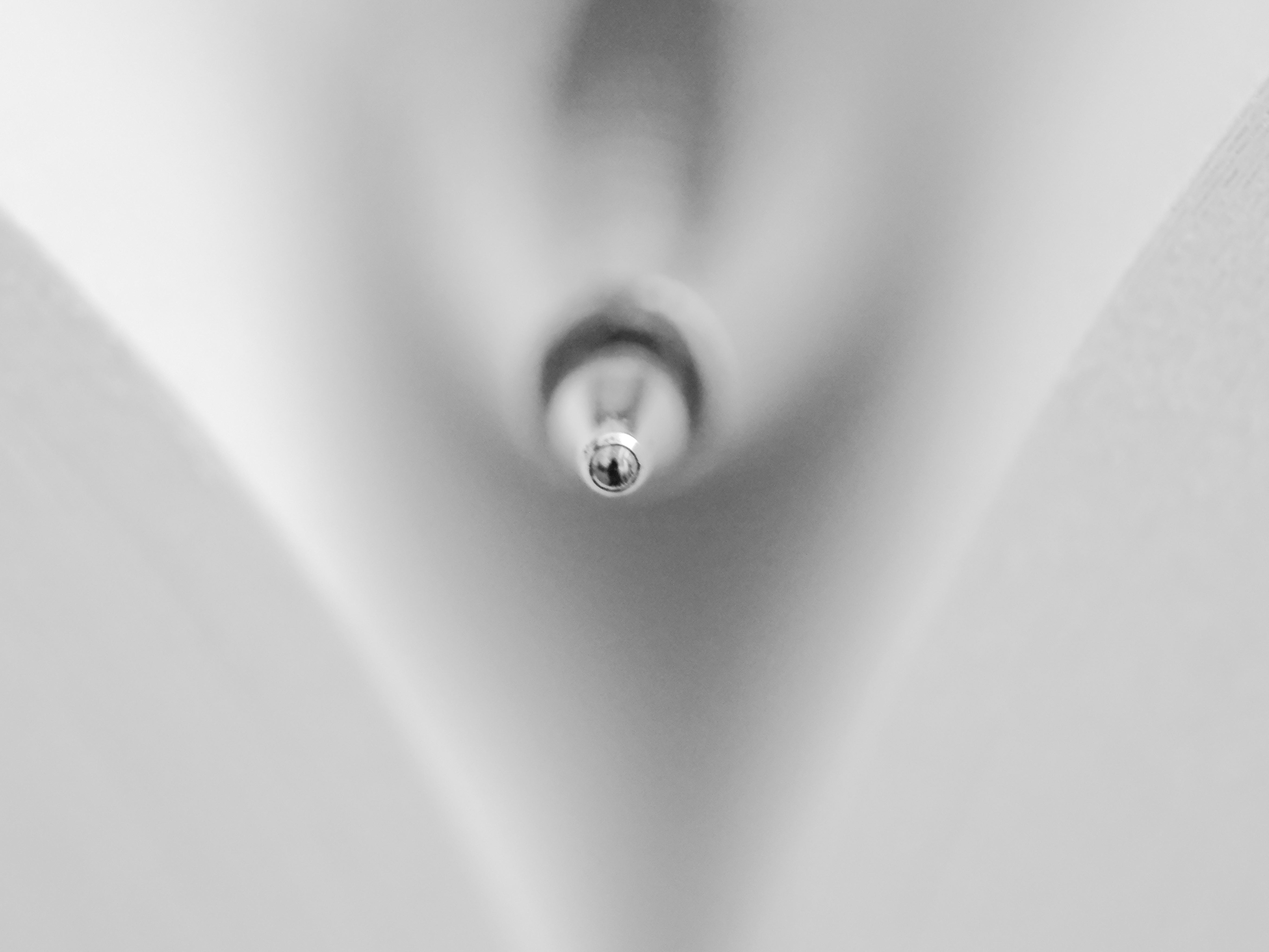 Een pen ligt achter een technisch lego blokje. Door het gaatje ligt de focus op de ballpoint. Die weerspiegelt de fotograaf.