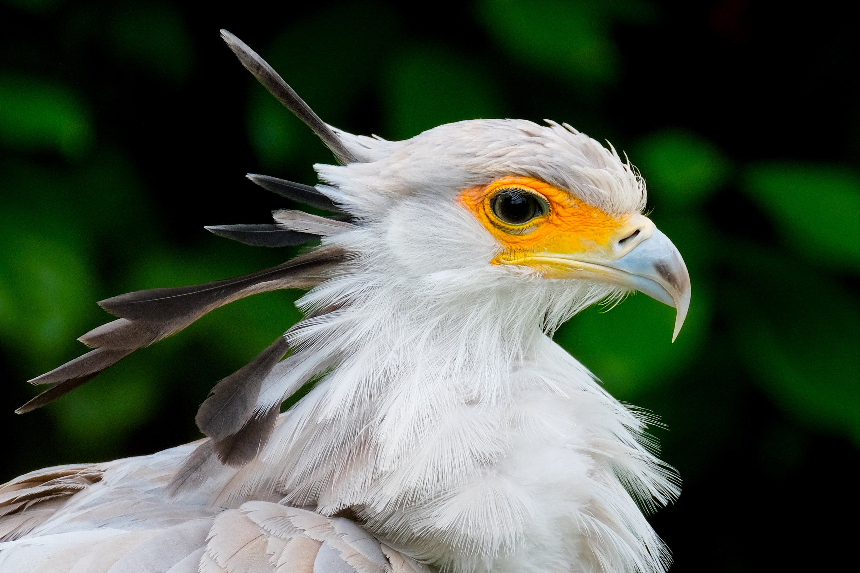 De secretarisvogel ontleent zijn naam aan de zwarte sierveren achter op de kop, die lijken op pennen achter het oor.