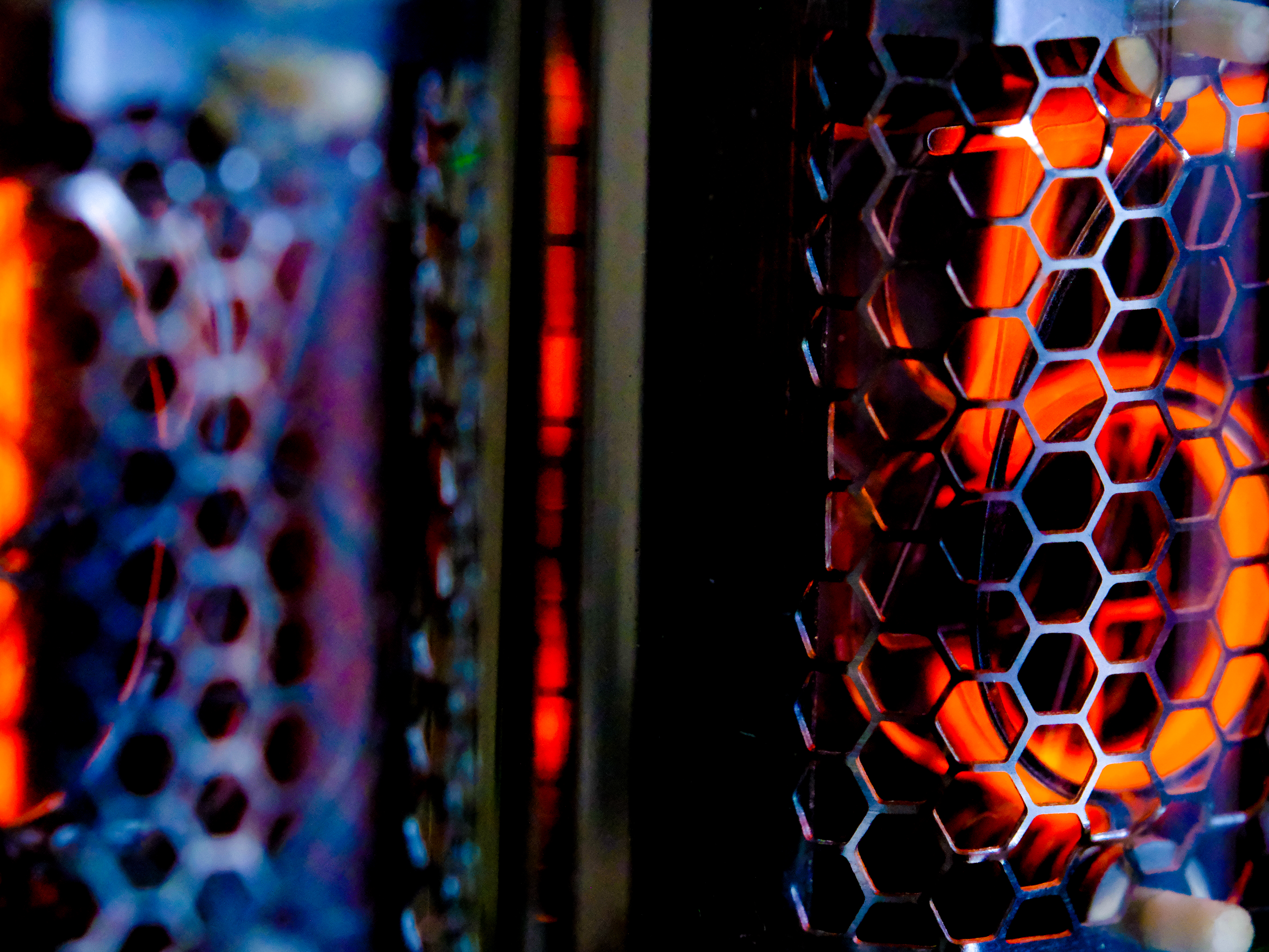 Vork die op een keukenrasp ligt. De kleuren komen van een laptopscherm dat er achter staat. Als je inzoomt zie je mooi de slijtage aan de vork die met het blote oog nauwelijks zichtbaar is.