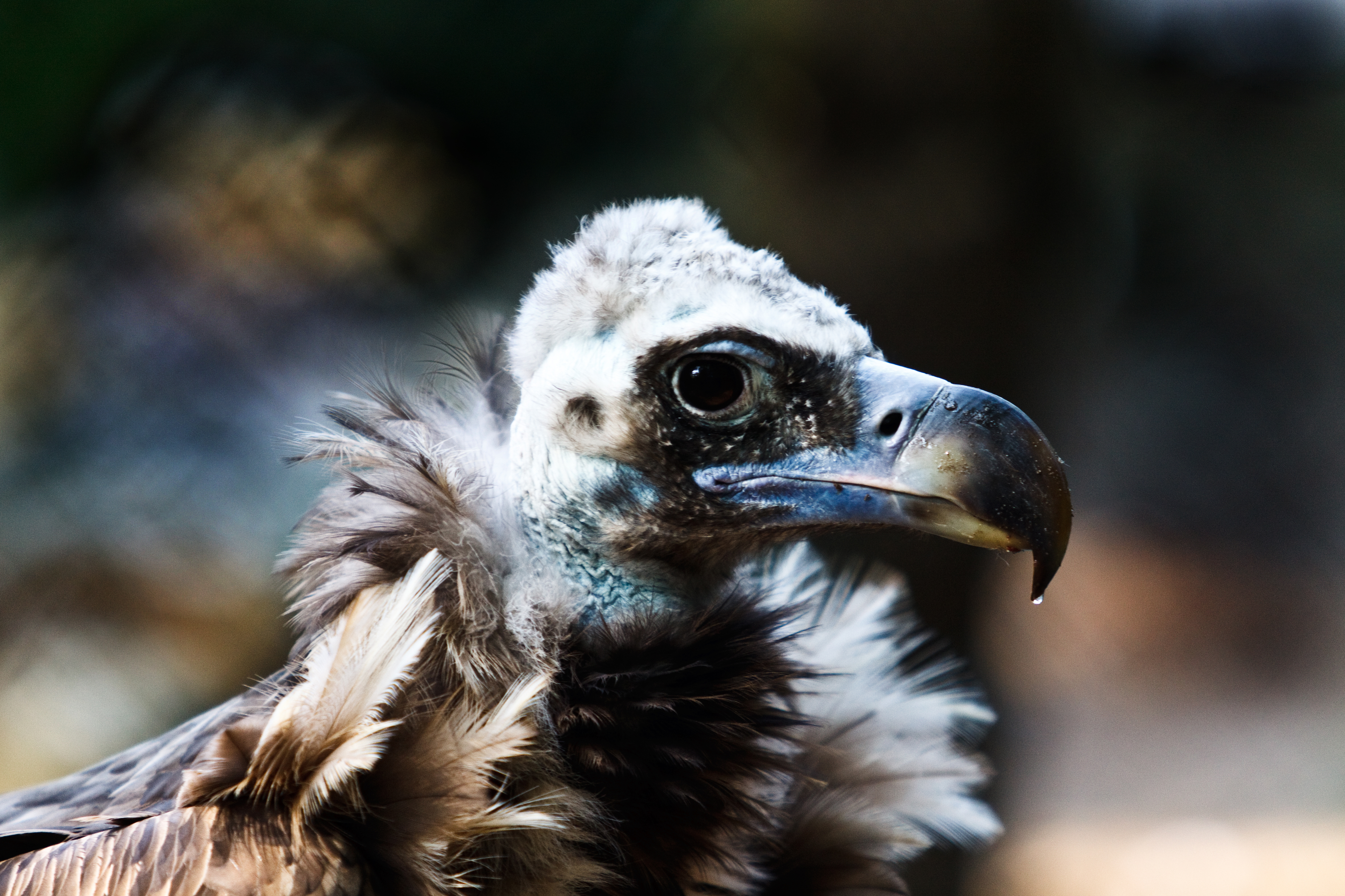 Het roffelige jong van een gier kwam even kort naar buiten. Het kleurenpalet maakte deze foto voor mij bijzonder.