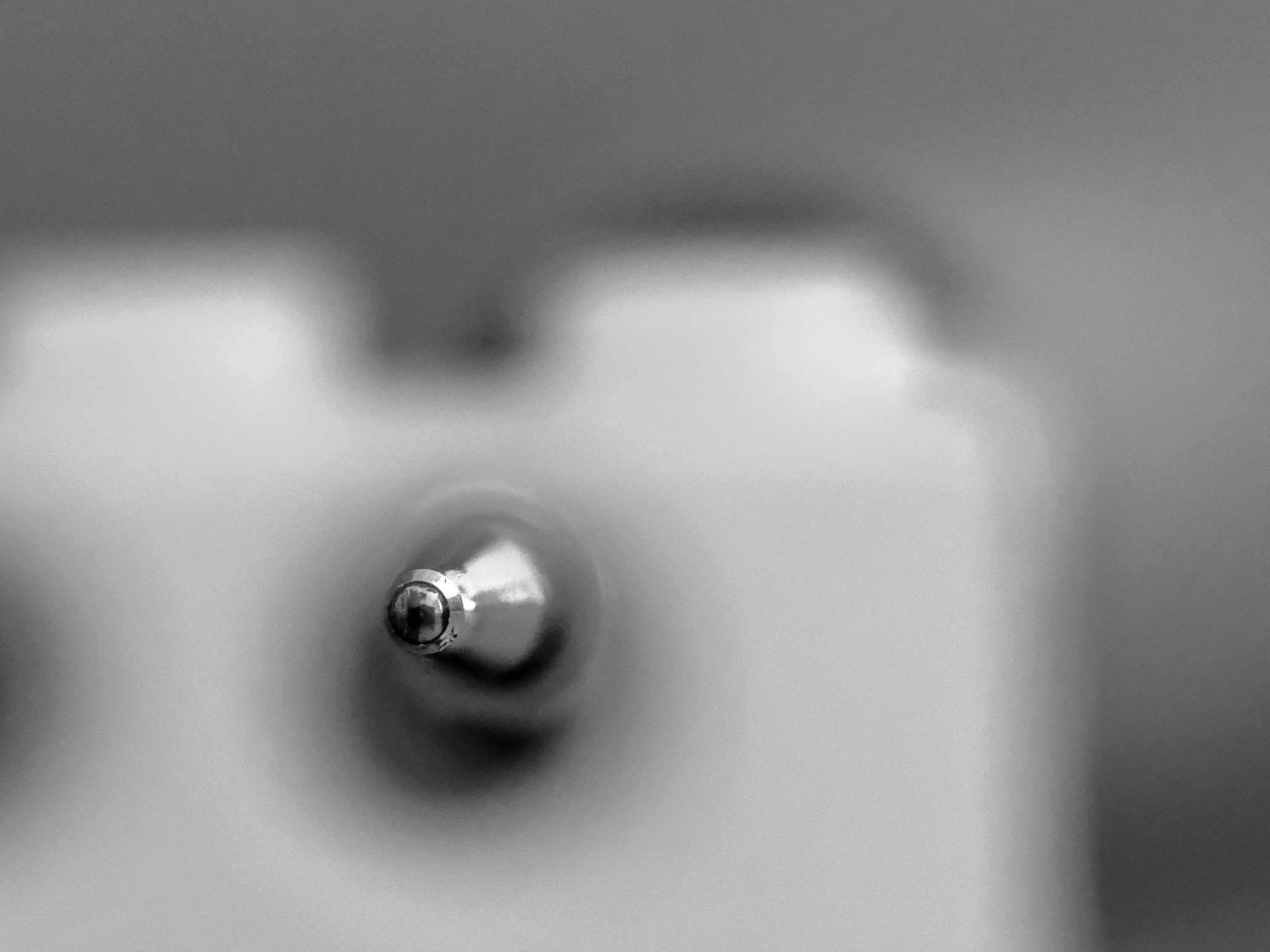 Een pen ligt achter een technisch lego blokje. Door het gaatje ligt de focus op de ballpoint. Die weerspiegelt de fotograaf.