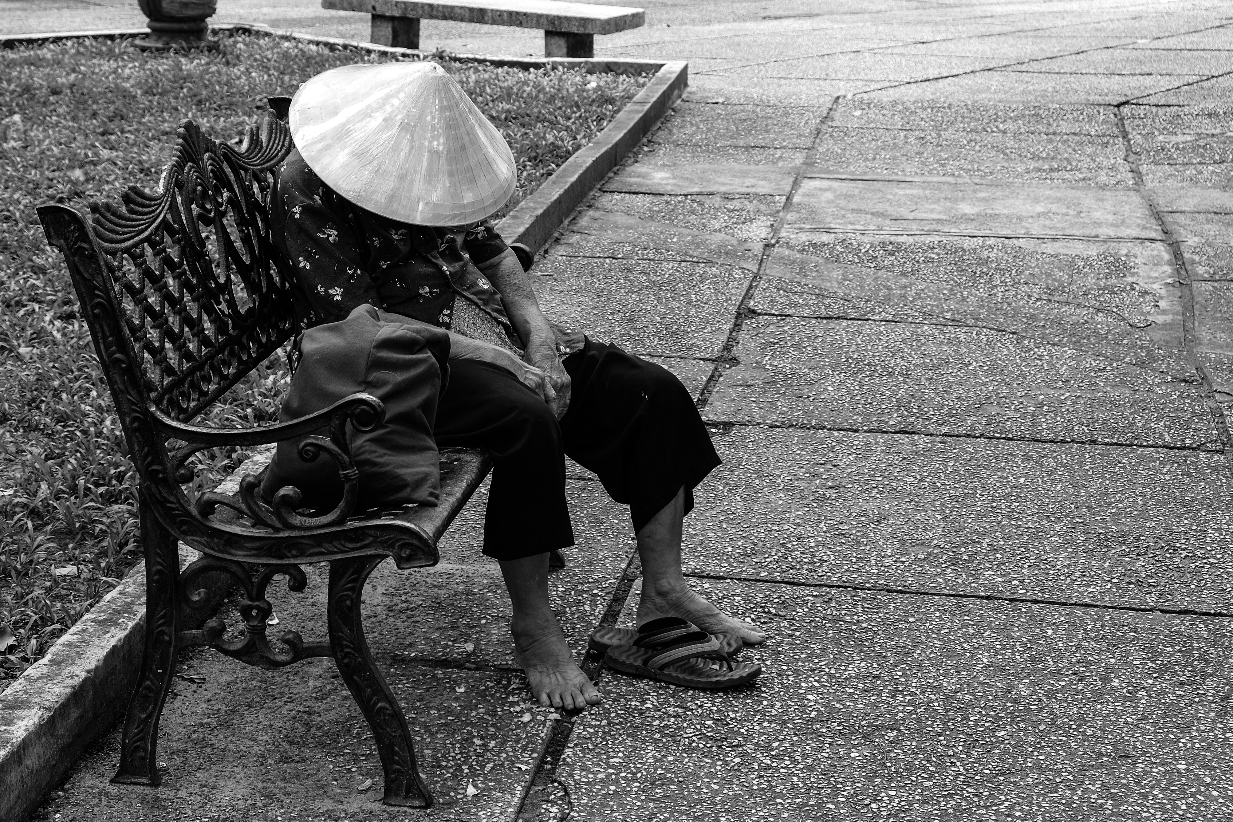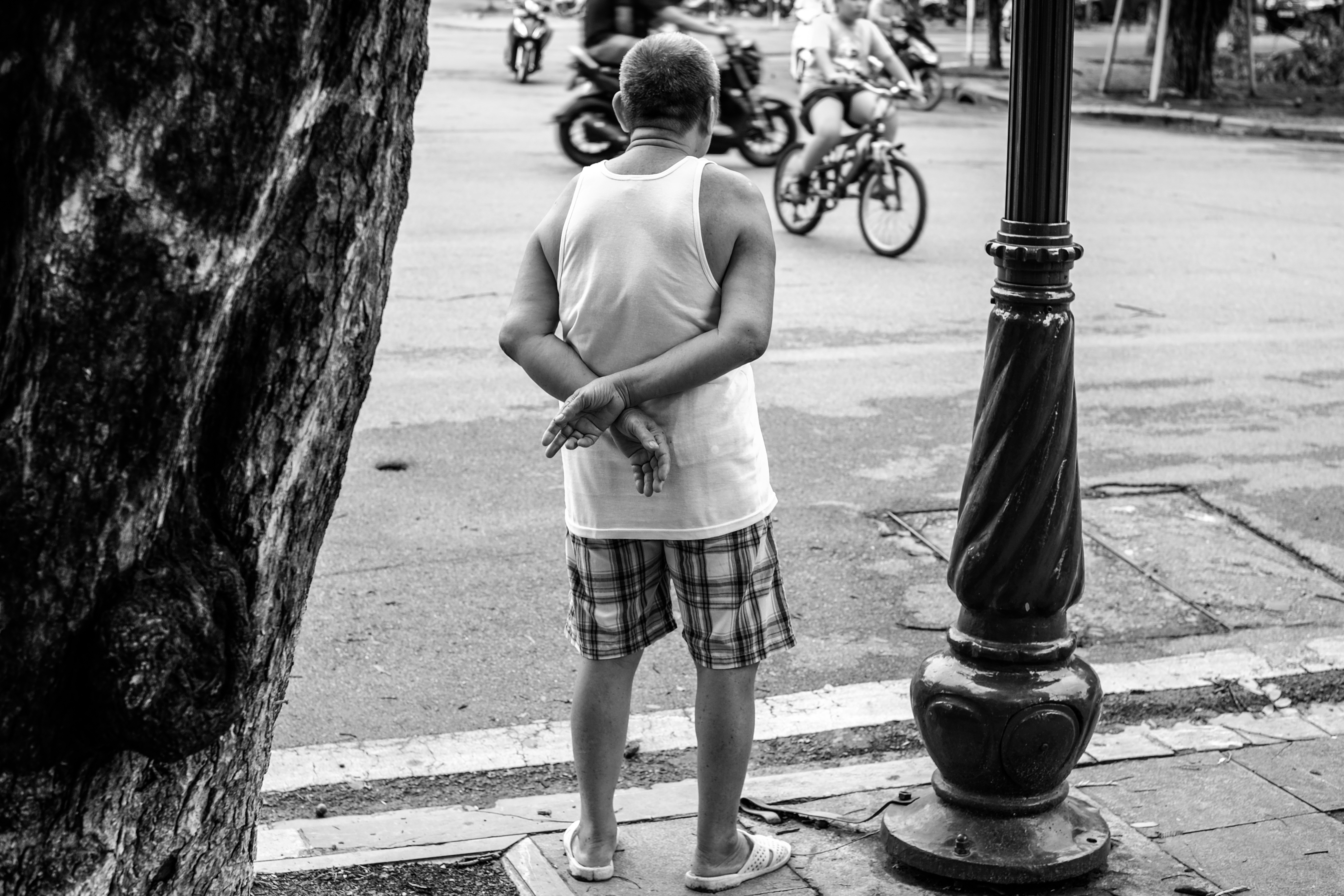 Beeld dat mooi weergeeft hoe de oudere generatie Vietnamezen de modernisering volgen op straat.