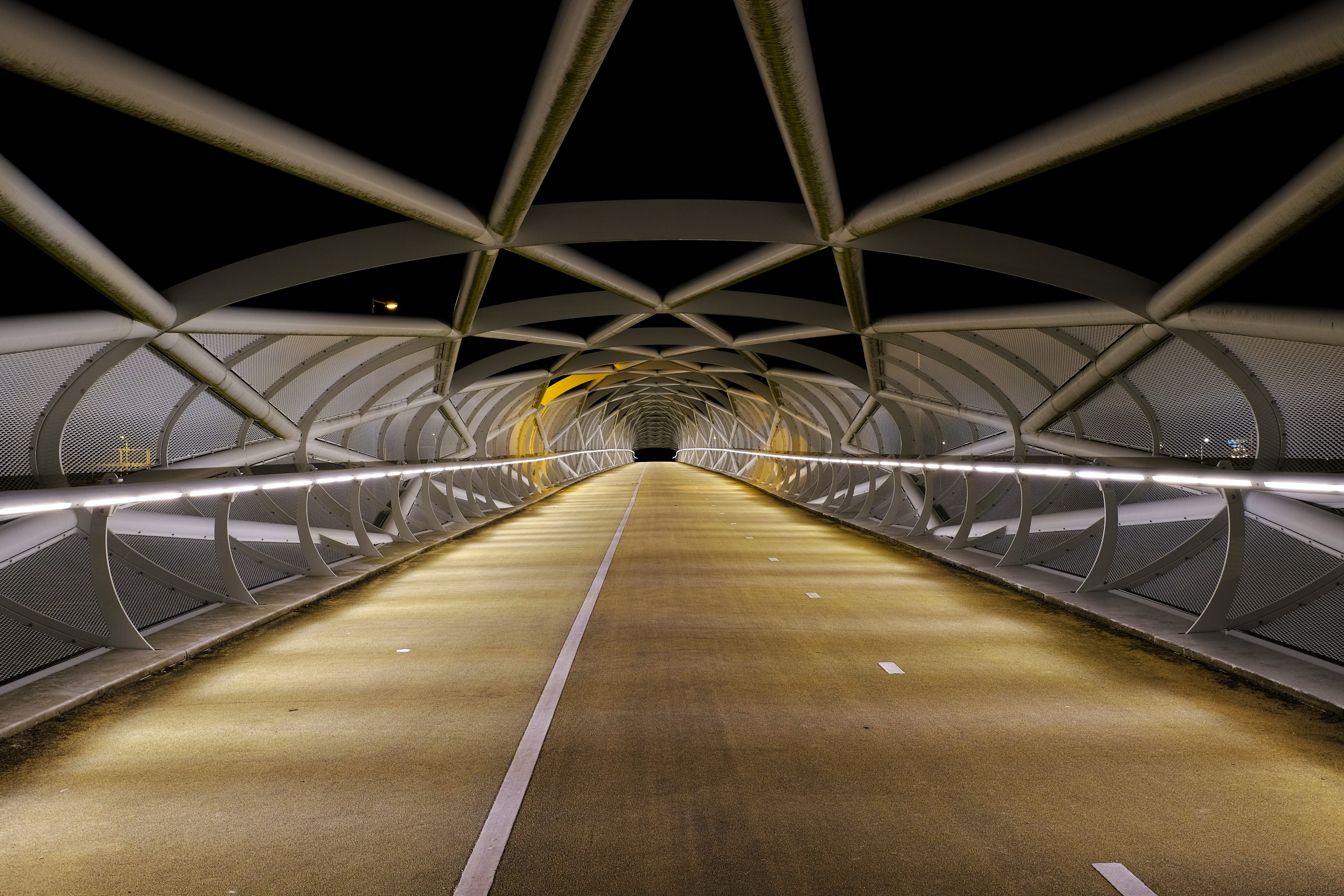 A16 fietsbrug bij Rotterdam Terbregseplein / Ommoord heet zo omdat de staalconstructie visueel lijkt op een soort geweven kousstructuur. Hij verbindt stad en recreatiegebied voor fietsers en wandelaars.